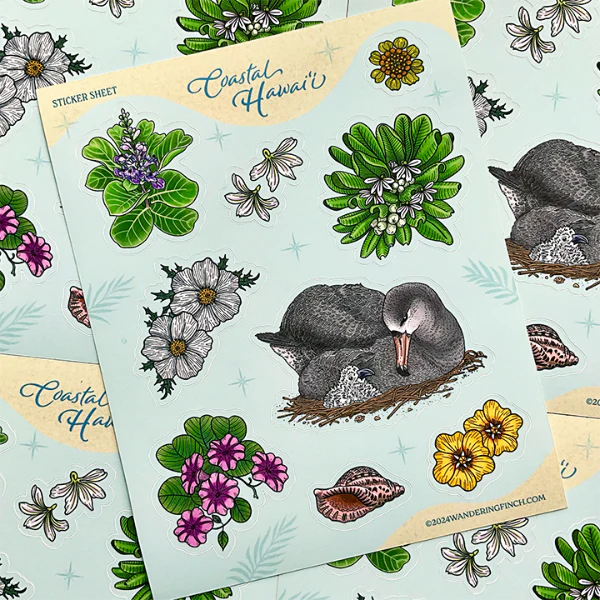 Celebrate manu with stickers by local artist, Joanna Maney. Her art is inspired by the beauty of Hawai'i and its native species and highlights our unique birds and their ecosystems.