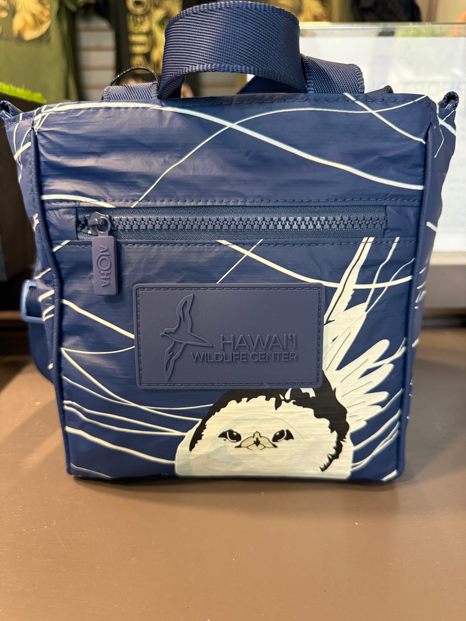 This custom ALOHA Collection crossbody features the Koa‘e kea – White-tailed Tropicbird in the front and the ‘Ua‘u – Hawaiian Petrel in the back. The illustrations were based off of actual patients at the Hawaiʻi Wildlife Center. This HWC-exclusive design pays tribute to a seabird's life on water. When these birds are in care, it is important that we pay attention to this critical component of a seabirdʻs life in order to maximize their chances of a successful recovery. Proceeds from the sales of this bag support the operations of the Hawaiʻi Wildlife Center and the care of all of our patients.