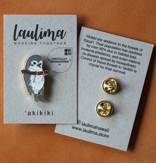 Celebrate your love of native manu with gold enamel pins in ʻiʻiwi, manu o Kū, ʻakikiki, ʻapapane, ʻamakihi, palila, nēnē, keiki nēnē, ʻalalā, 'io and pueo